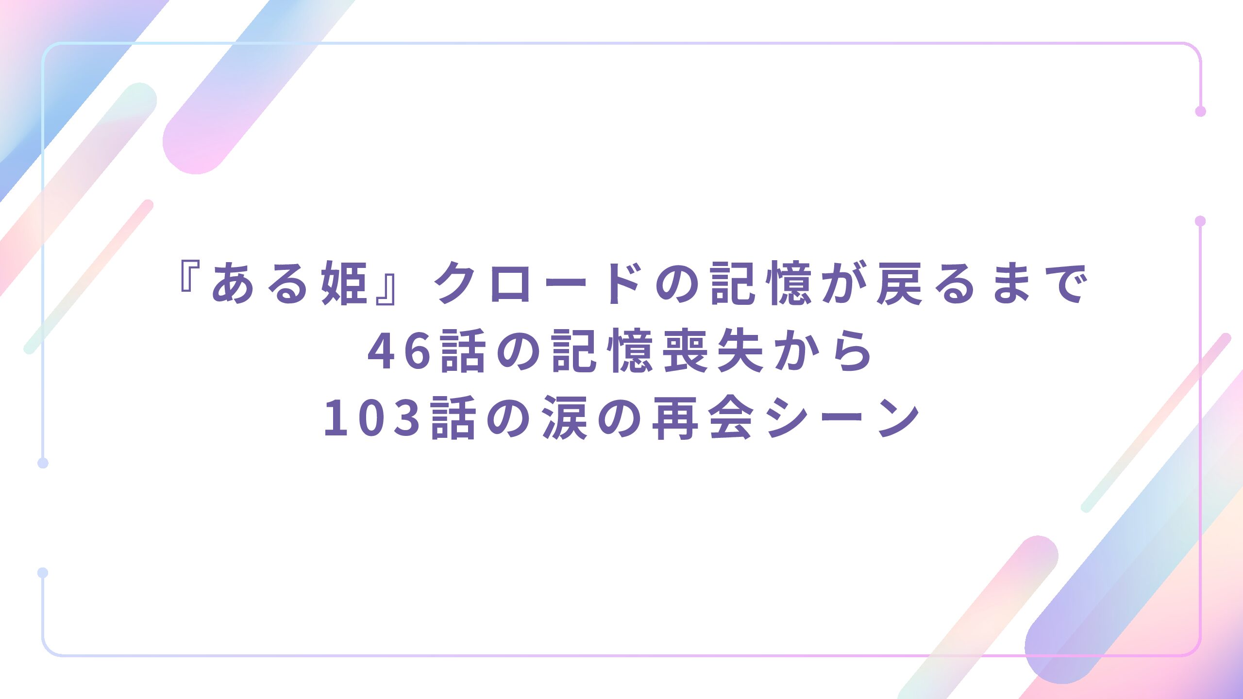 この記憶喪失エピソードは、『ある姫』という作品の中でも特に印象的なストーリーアークとして、多くのファンの心に刻まれています。