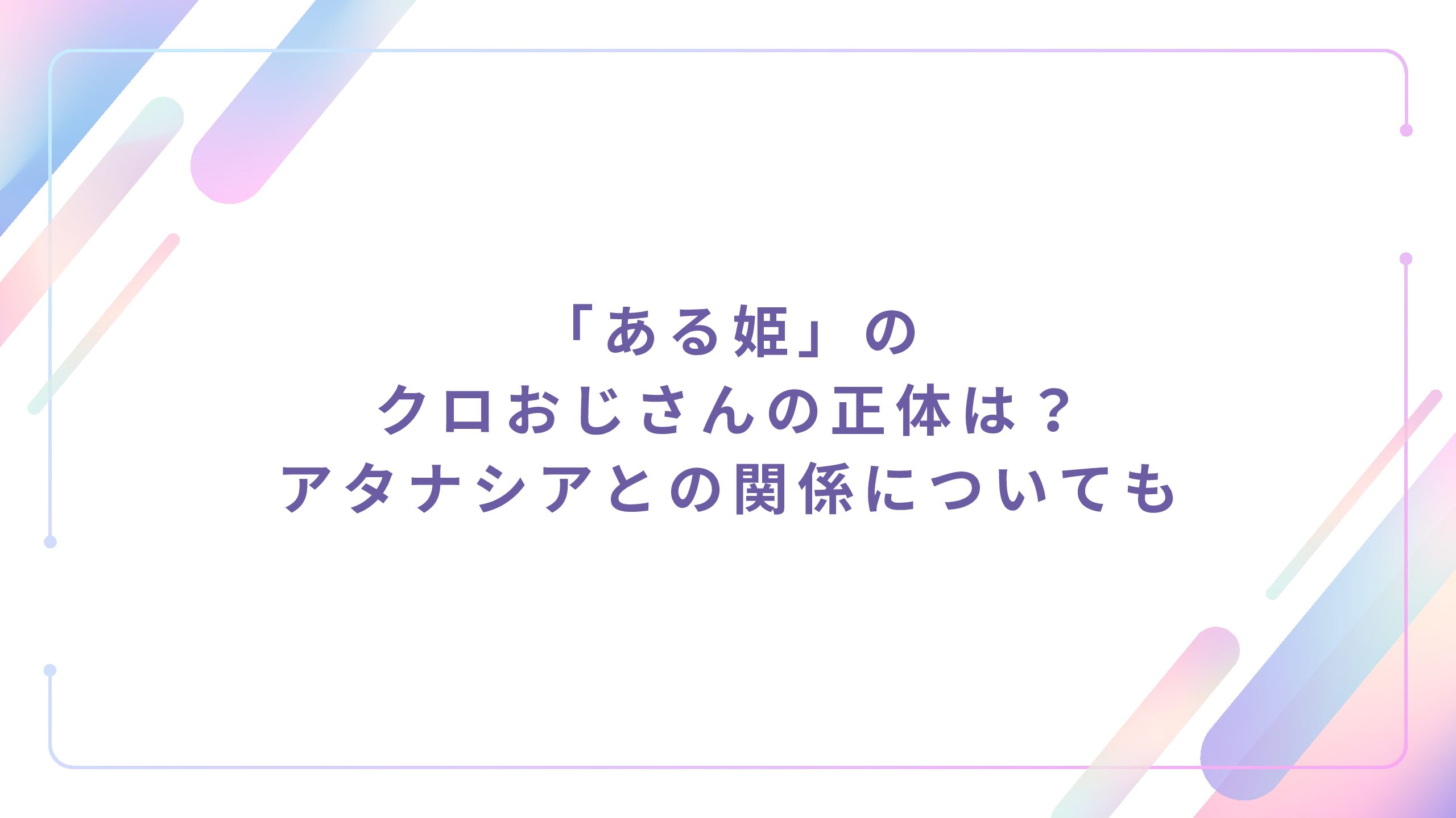 「ある姫」に登場するクロおじさんの正体は、オベリア帝国の現皇帝クロード・デイ・エルジェア・オベリアであり、主人公アタナシアの実の父親です。彼は愛する妻ダイアナを失った悲しみから冷酷な皇帝となり、一時は娘をも見捨てていましたが、アタナシアとの交流を通じて徐々に父親としての愛情を取り戻していく複雑なキャラクターです。
