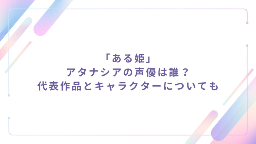 「ある姫」アタナシアの声優は誰?代表作品とキャラクターについても